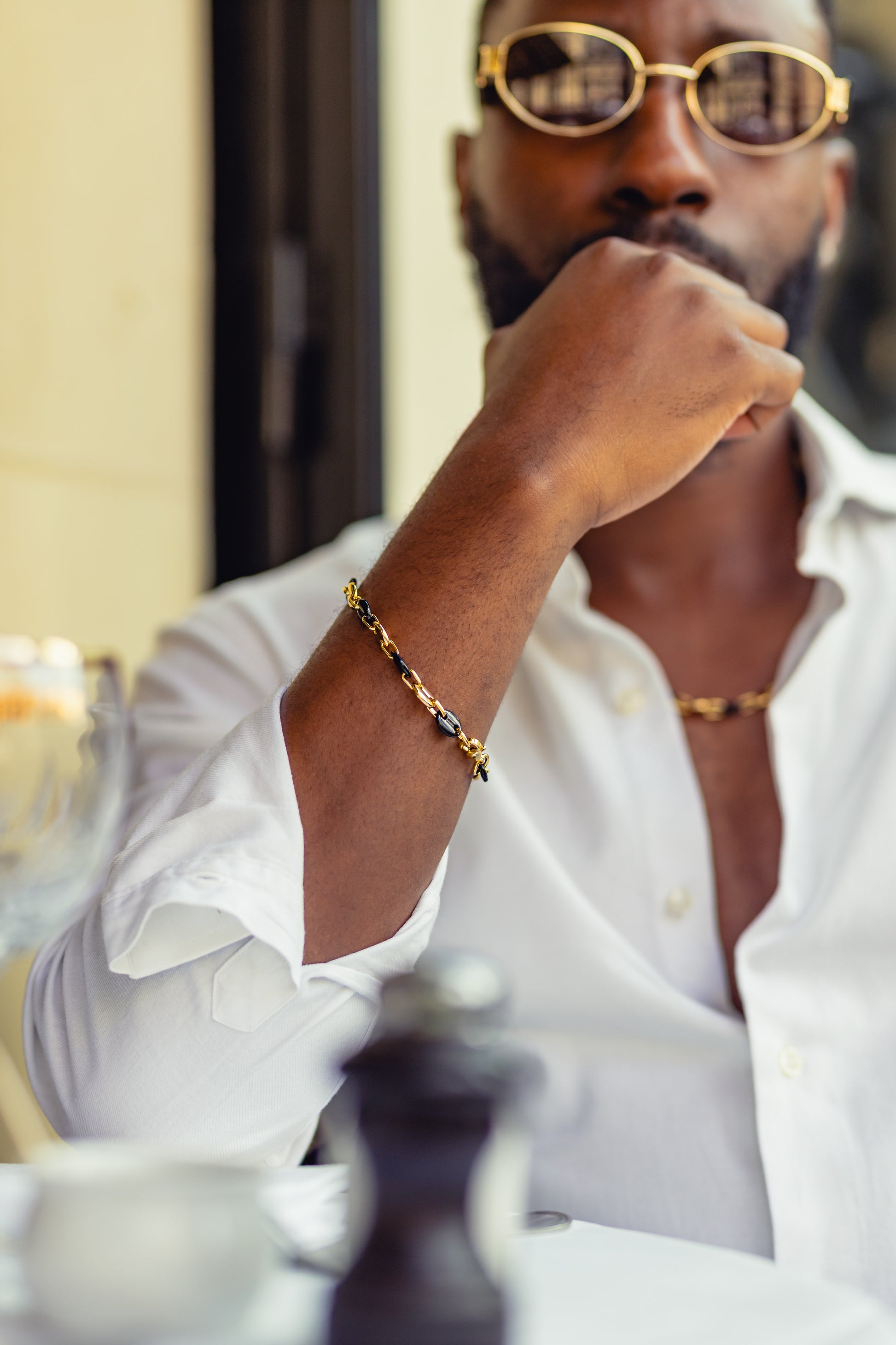 Plongez dans l’univers audacieux de Madrosa Concept Store avec notre ensemble gourmette et collier “Café Noir”, confectionné en graines de café dorées et noires, montées sur un acier inoxydable premium. Chaque pièce incarne la force, la détermination et l’élégance d’un homme ambitieux, entrepreneur et maître de son image.